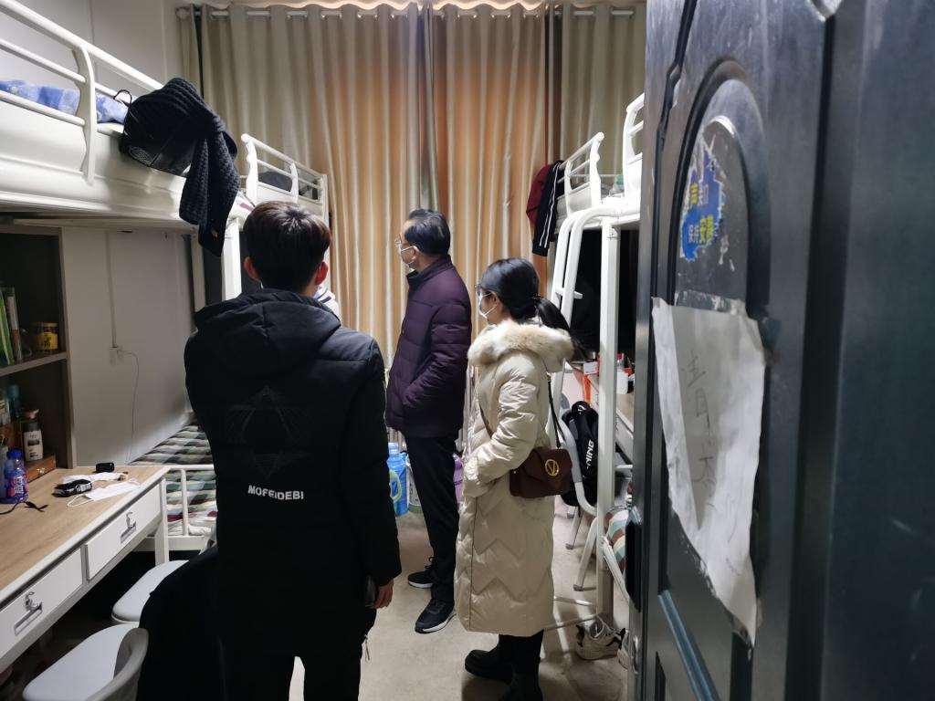 12月1日下午,红足一1世足球网官方网站领导班子、学工办老师及班主任深入学生公寓,进行常态化疫情防控宿舍安全卫生检查。