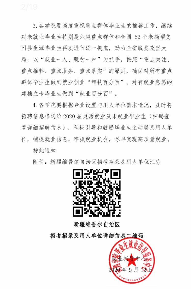 关于认真组织2020届毕业生参加“千人进疆就业计划”专项招聘活动的通知(第九期)