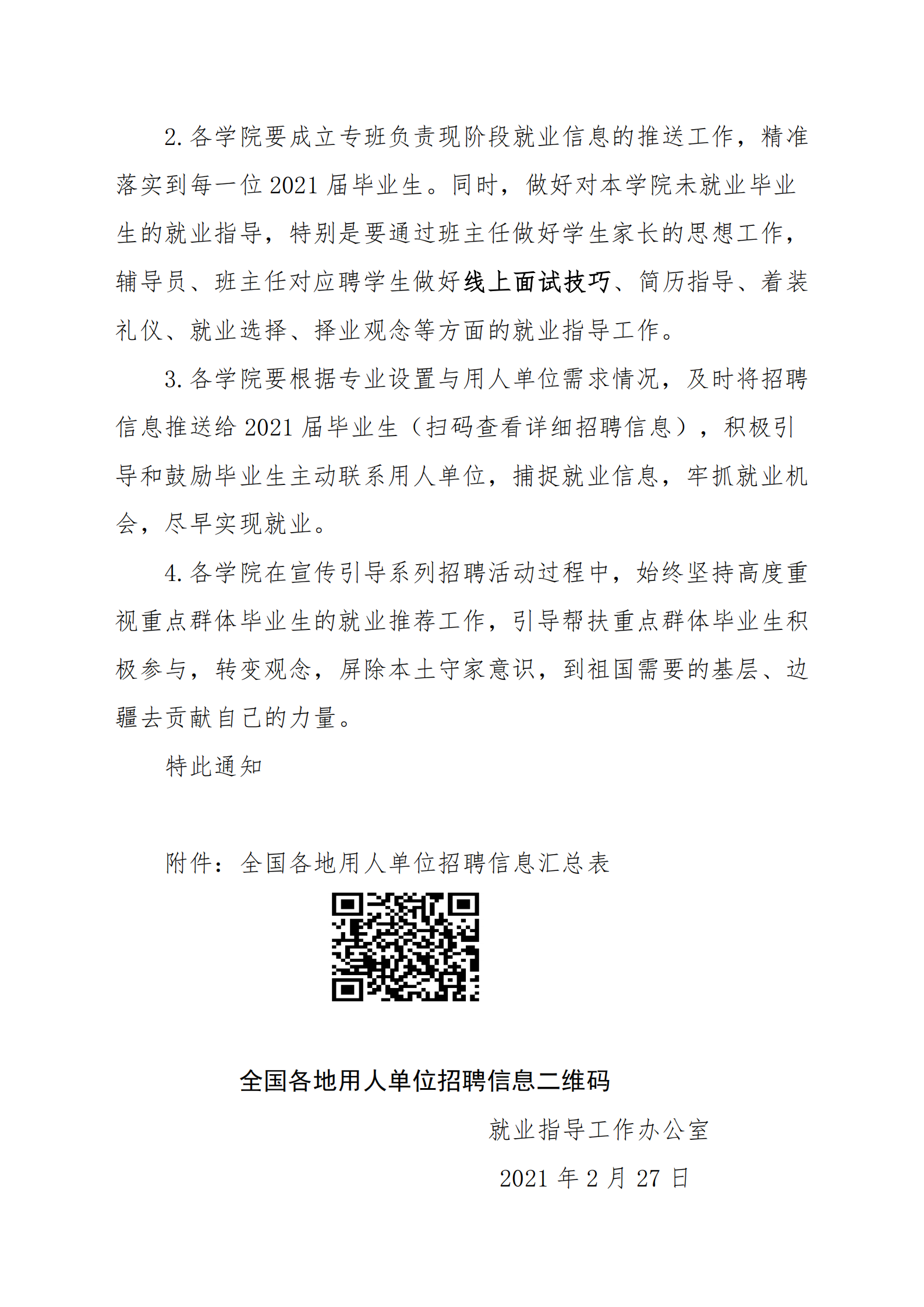 关于组织引导2021届毕业生充分利用寒假积极参加全国各地招聘活动的通知(第六期)
