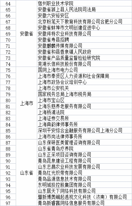 甘肃等11个省份招录毕业生用人单位汇总表
